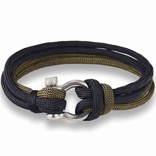 Segelarmband i 6mm svart och grön sjömansnör och stållock.Str. ca. 20 cm så en snäv handledsstorlek på 17-18 cm är bra för detta armband.