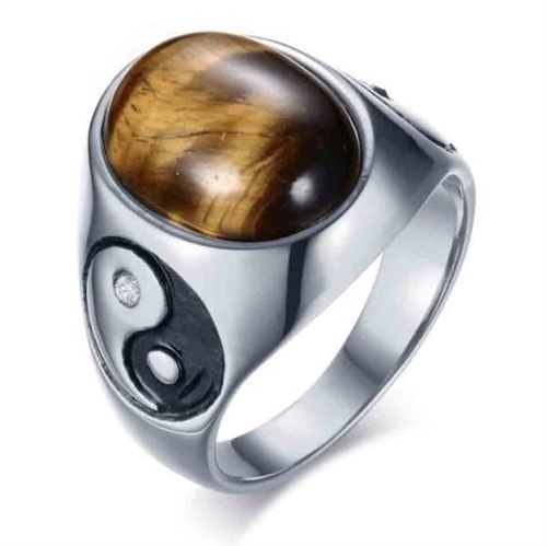 Vacker herrring i rostfritt stål med stor Tigereye natursten